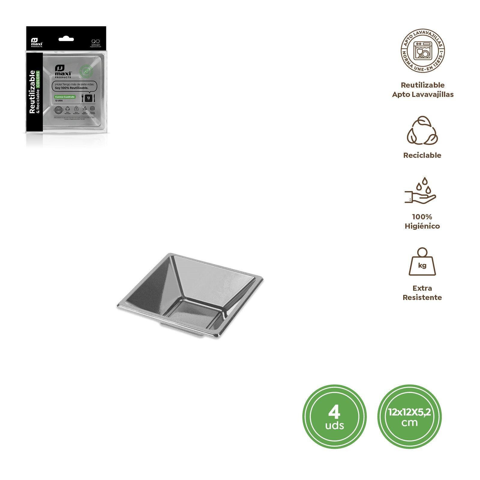 Ciotola riut. argento 12x12x5,2cm ps+pp 4pz perfetto per un uso versatile. Design curato, resistente e adatto a feste, allestimenti o casa. Prodotto ideale per chi cerca praticità e stile in ogni occasione.