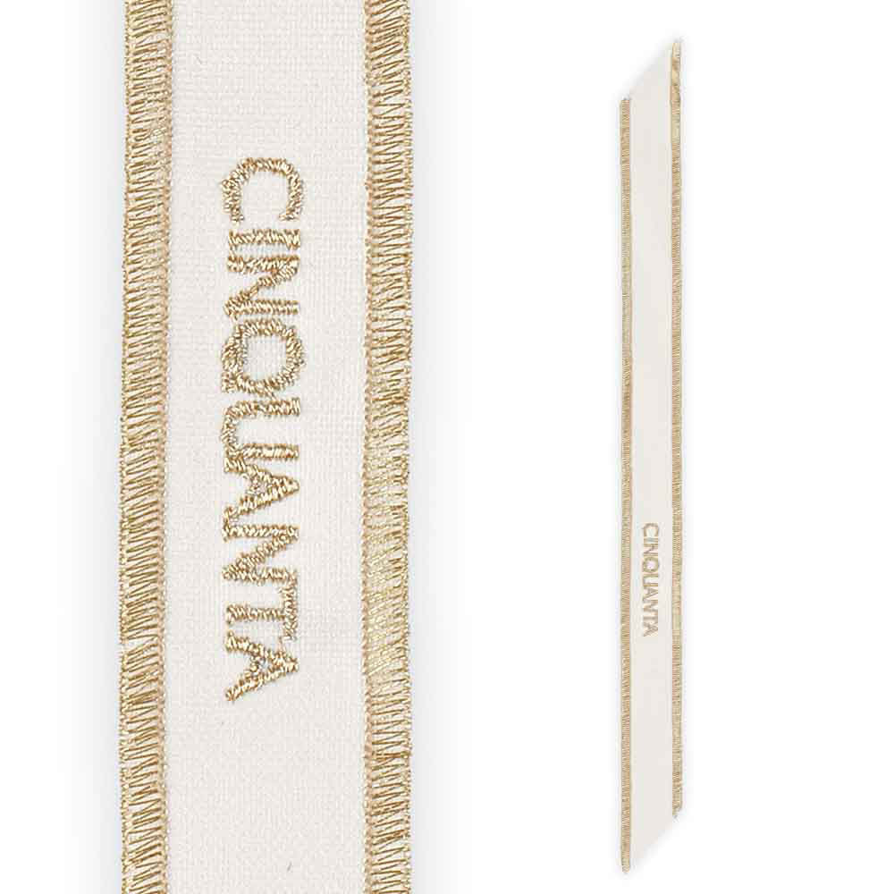 Elegante e simbolico. Il collarino in stoffa con scritta "Cinquanta" color oro è perfetto per impreziosire bomboniere, sacchetti o decorazioni dedicate al 50° anniversario. Misura 35 cm di lunghezza e 2,5 cm di larghezza.