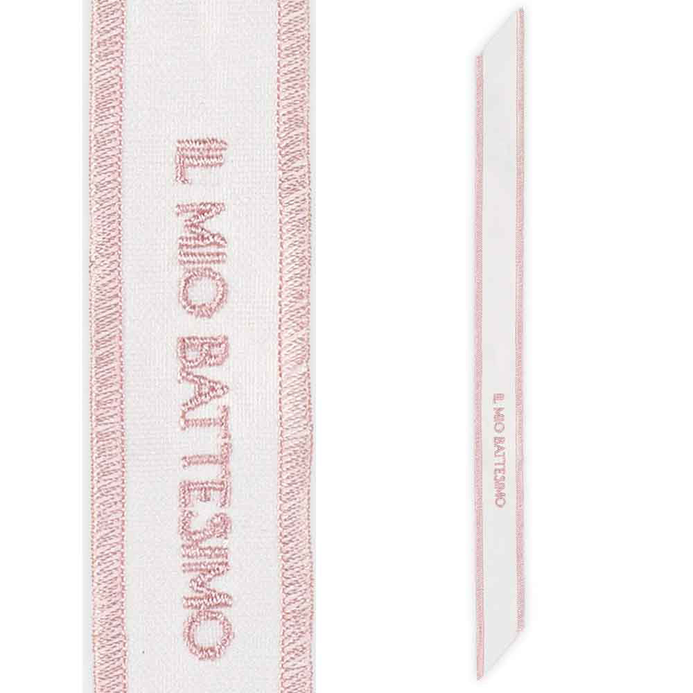 Un tocco dolce e delicato per un giorno speciale. Il collarino in stoffa rosa con scritta “Il Mio Battesimo” è perfetto per impreziosire bomboniere, sacchetti e decorazioni per il battesimo di una bimba. Misura 35 cm di lunghezza e 2,5 cm di larghezza.