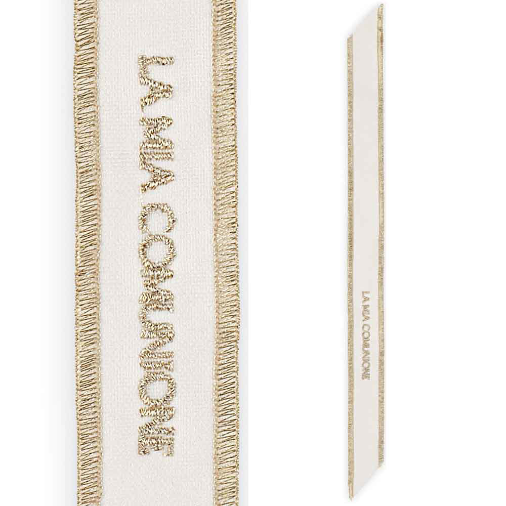 Un dettaglio elegante per un giorno importante. Il collarino in stoffa con scritta “La Mia Comunione” color oro è perfetto per rifinire con stile bomboniere, sacchetti e confezioni dedicate alla Prima Comunione. Misura 35 cm x 2,5 cm.