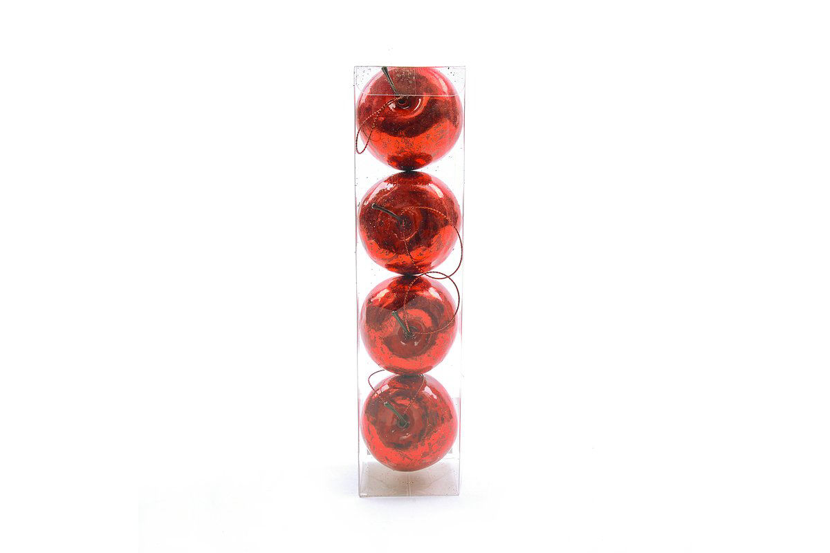 Confezione da 4 mele rosse in plastica da appendere, ideali come decorazioni natalizie eleganti e luminose.