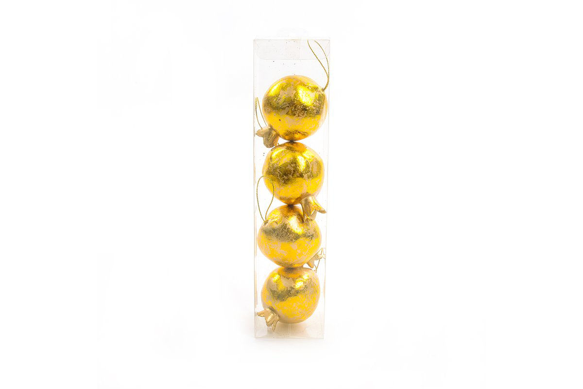 Confezione 4 melograni da appendere foglia oro in plastica 6 cm
