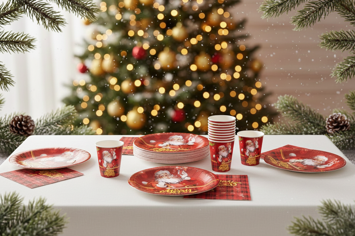 Il coordinato tavola Babbo Natale rende ogni festa natalizia divertente e accogliente grazie ai piatti, bicchieri e tovaglioli decorati con Santa Claus. Ideale per bambini e famiglie. In basso puoi scegliere singolarmente misure e quantità.
