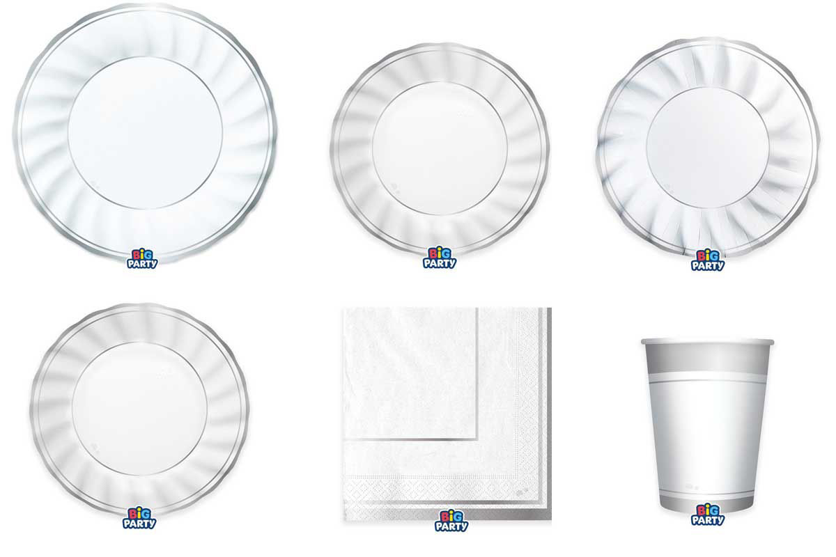 Il coordinato tavola Classic Silver Metal illumina feste e cene con un argento elegante. Bicchieri, piatti e tovaglioli coordinati creano mise en place preziose. In basso puoi selezionare singolarmente misure e quantità per creare il tuo set.