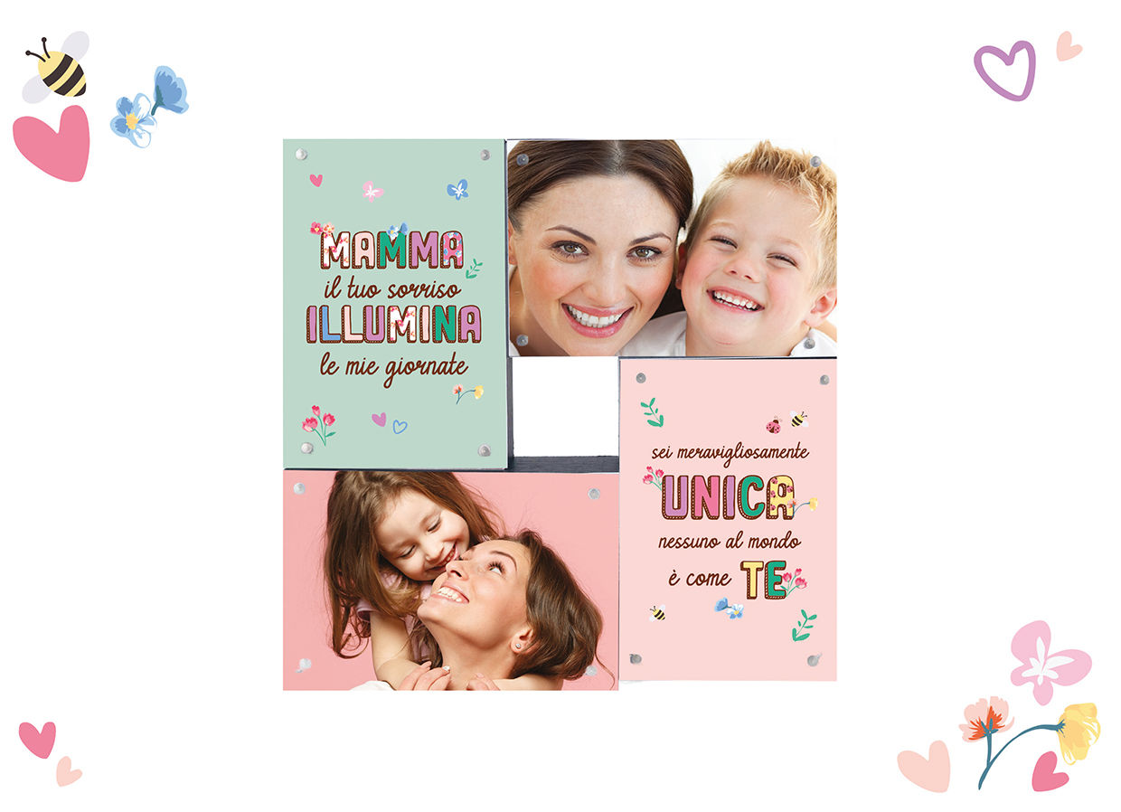 La Cornice Incastri Mamma è un pensiero dolce e significativo per celebrare la Festa della Mamma. Ideale per custodire foto speciali e creare un angolo emozionante in casa. Un regalo affettuoso, utile e decorativo.