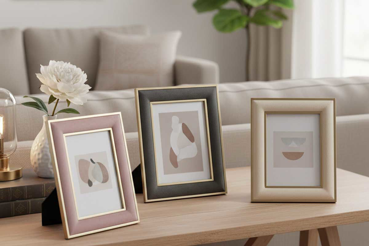 Elegante cornice portafoto 13x18 cm realizzata in polistirene con rivestimento effetto velluto, perfetta per valorizzare ogni ricordo.
