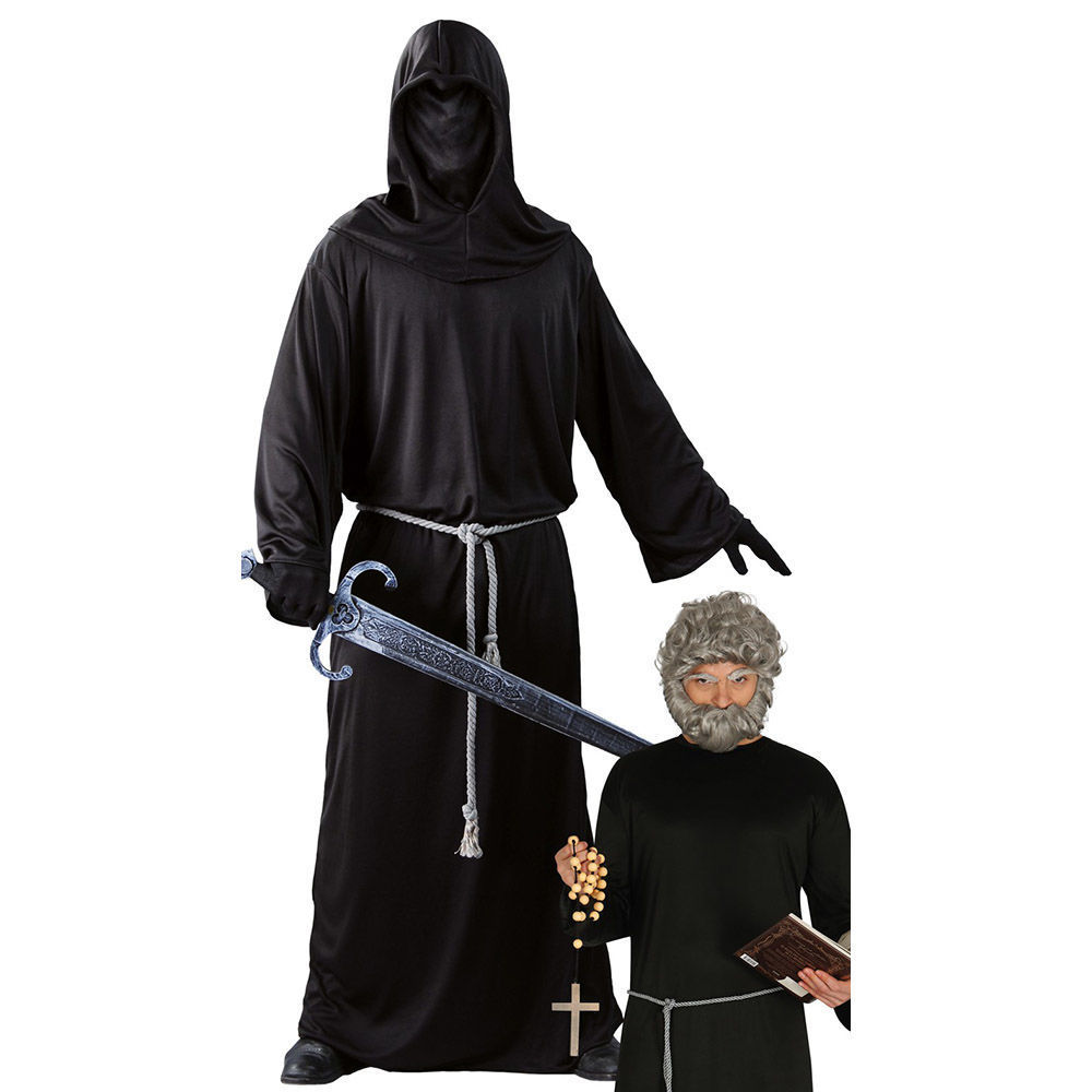 Costume Fantasma Maledetto per adulto taglia 52/54 (L). Include tunica lunga strappata e cappuccio con velo nero. Misure: petto 111 cm, vita 98 cm, fianchi 110 cm.