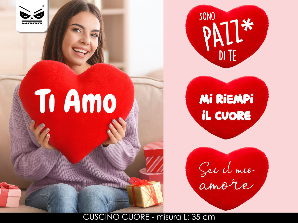 Cuscino Cuore 35 cm con frase. Cuscino a forma di cuore con scritta ricamata. Idea regalo San Valentino e non solo. (non è possibile scegliere la scritta, verrà inviato un modello a caso tra quelli disponibili)