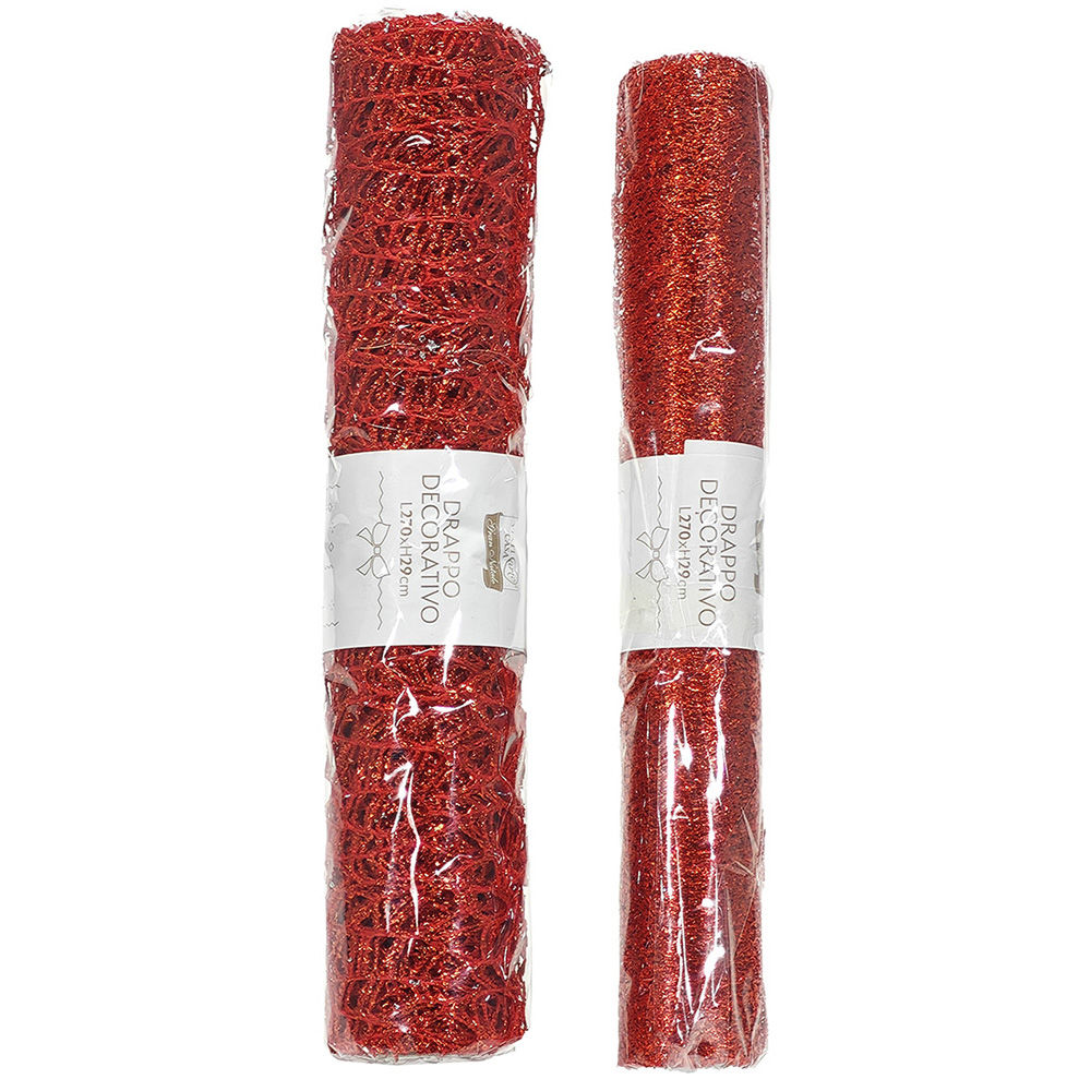 Drappo decorativo rosso, largo 29 cm e lungo 270 cm, ideale per allestimenti natalizi, tavole e decorazioni creative.
