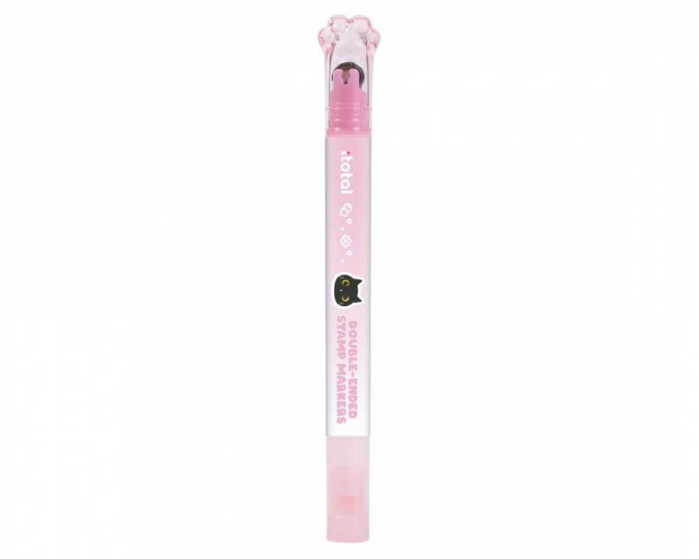 Evidenziatore rosa a doppia funzione con roller stamp decorativo ed evidenziatore glitterato. Design kawaii con tappo a zampetta e colore pastello, perfetto per scuola, appunti e journaling creativo.