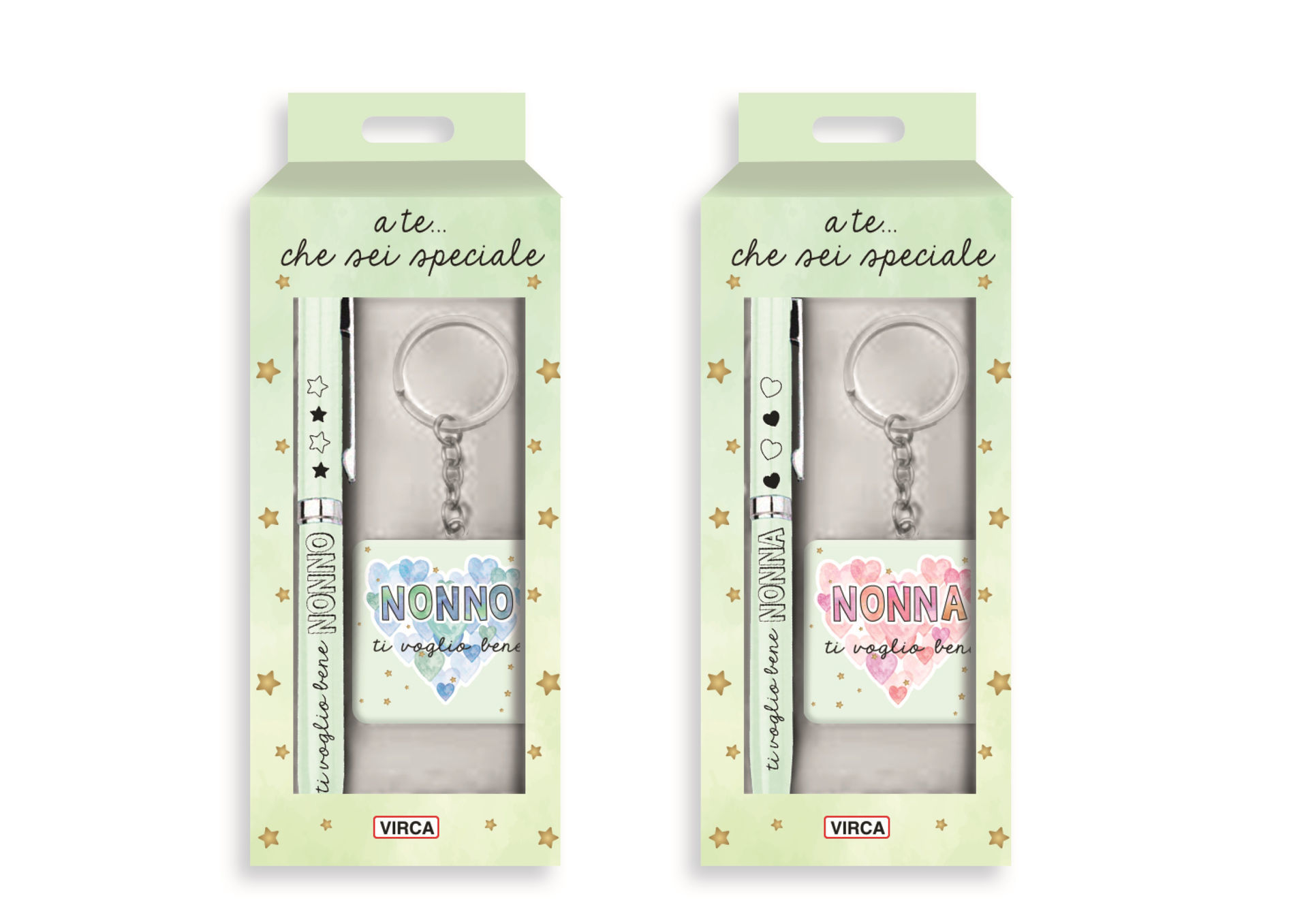 Questo raffinato set formato da una penna e un portachiavi è pensato per celebrare i nonni in modo affettuoso e utile allo stesso tempo. La penna, impreziosita da dettagli delicati, accompagna ogni scrittura quotidiana con un tocco sentimentale, mentre il portachiavi è un accessorio pratico che ricorda ogni giorno quanto sono speciali i nonni. Realizzato con materiali di qualità, il set unisce estetica e funzionalità, diventando un dono perfetto per la Festa dei Nonni, i loro compleanni o per dimostrare il proprio affetto in ogni occasione. I design coordinati rendono il set ideale sia per lei che per lui, esprimendo un messaggio di amore originale e quotidiano. Regalare questo set significa offrire un pensiero curato che unisce praticità, emozione e bellezza in un oggetto unico.