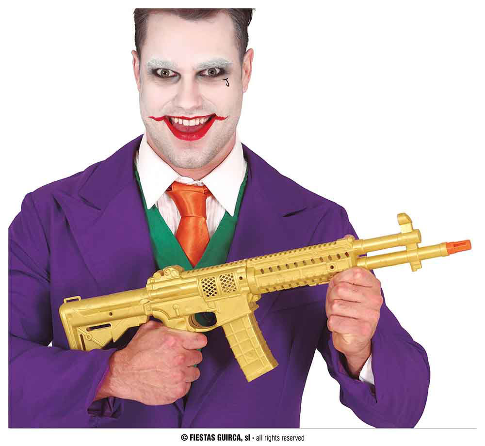 leva il tuo travestimento da Joker con il nostro Fucile Oro di 58 cm, l'accessorio ideale per il tuo costume di carnevale! Questo fucile, finemente dettagliato e rifinito in un accattivante colore oro, è perfetto per aggiungere un tocco di drammaticità e stile al tuo look da Joker. Realizzato in materiali sicuri e leggeri, è comodo da portare con te durante le lunghe serate di festa.