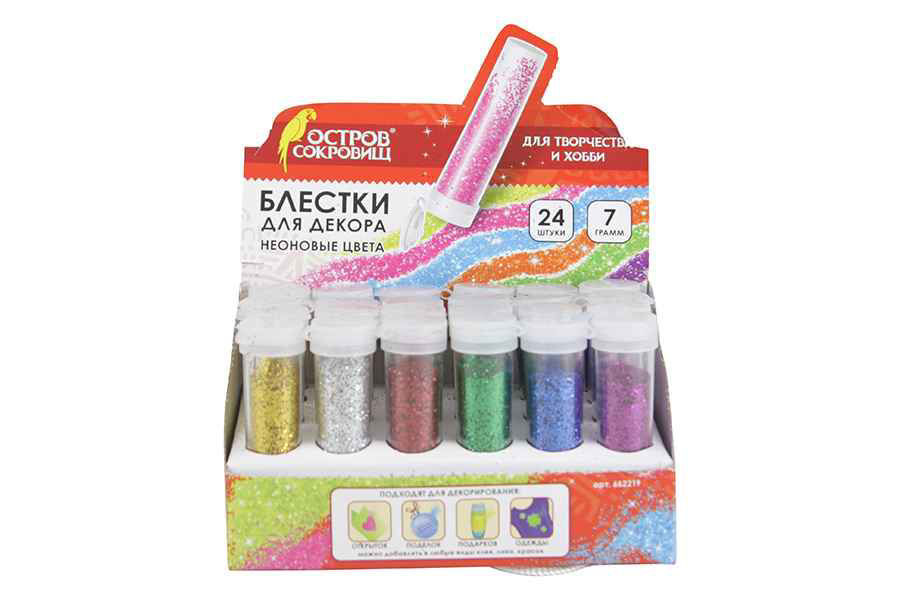 Glitter decorativi da 7 grammi in colori assortiti, ideali per lavoretti creativi, decorazioni, hobby e fai-da-te.