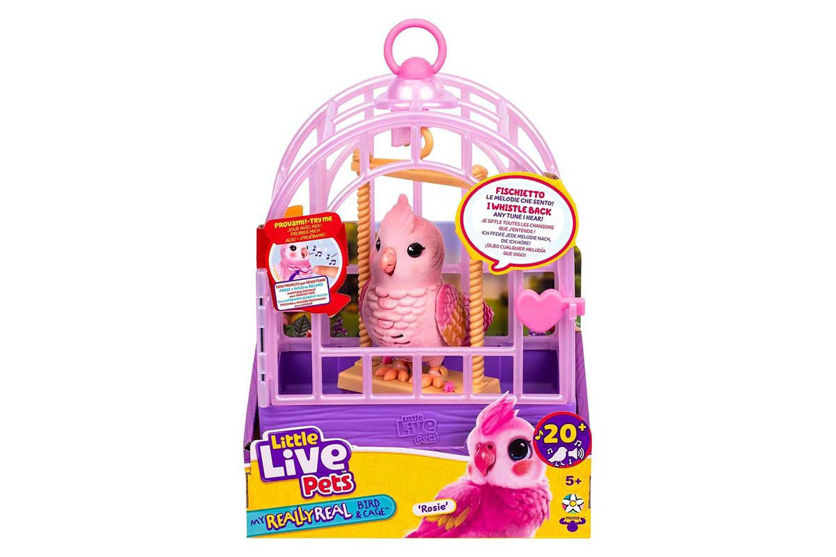 Happy Cocorito Sempre con Te, l’uccellino interattivo che risponde ai suoni, canta melodie e vive nella sua graziosa gabbietta portatile.