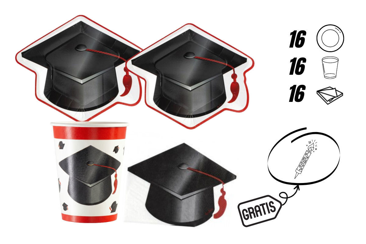 Il kit festa laurea 48 pezzi è la soluzione perfetta per organizzare una festa di laurea in modo semplice, veloce e coordinato. Il set include 16 piatti 28x23 cm, 16 bicchieri 250 cc e 16 tovaglioli 33x25 cm, ideali per allestire una tavola completa per 16 persone.