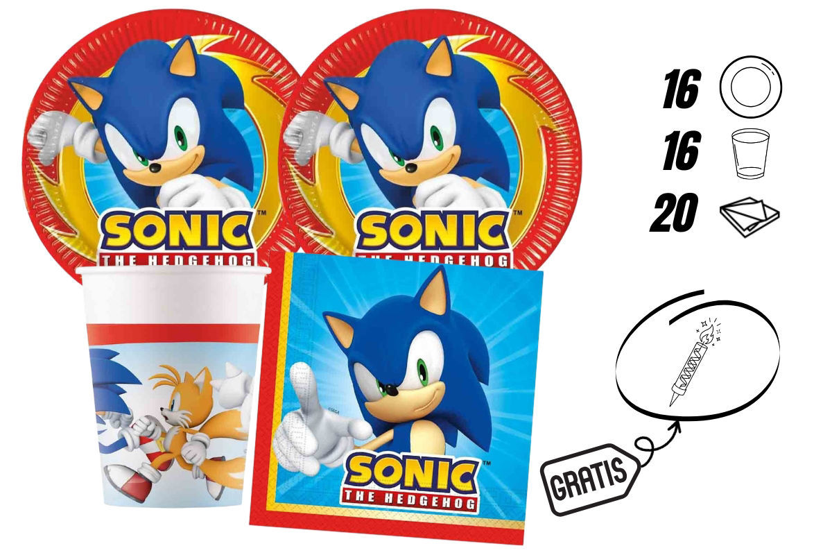 Il kit include: 16 piatti da 20 cm, 16 bicchieri da 200 ml, 20 tovaglioli da 33 x 33 cm e una candelina flambè in omaggio, perfetta per rendere ancora più speciale la festa.
