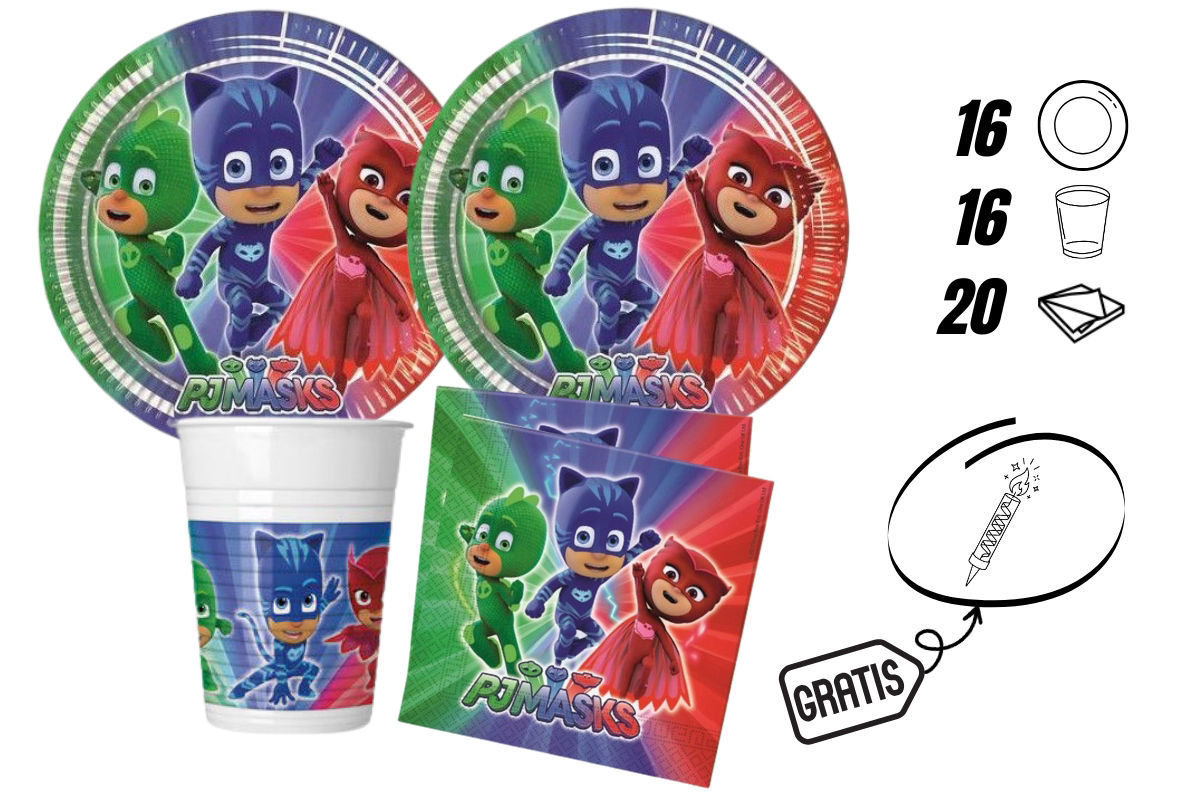 Il kit festa PJ Masks è perfetto per creare una tavola a tema supereroi pratica e d’impatto. Ideale per compleanno o party dedicati ai PJ Masks, questo set consente di allestire decorazioni coordinate in modo rapido e professionale.