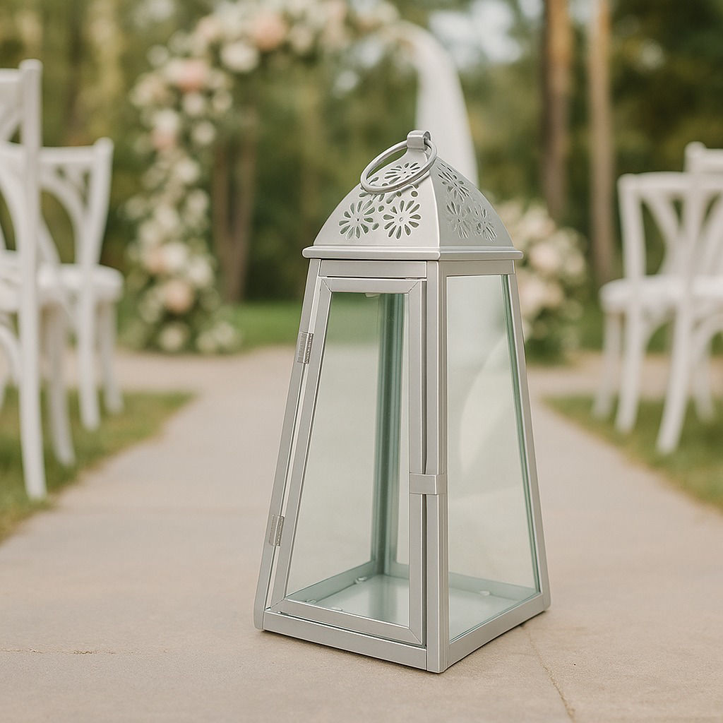 La lanterna bianca lucida è un complemento d’arredo elegante e versatile, perfetto per illuminare e decorare sia ambienti interni che esterni. Realizzata in metallo verniciato lucido con pannelli in vetro trasparente, presenta un design classico con dettagli traforati nella parte superiore, che creano giochi di luce suggestivi. Le sue dimensioni di h 41 cm e base 17x17 cm la rendono adatta per candele di varie dimensioni. Ideale per creare atmosfere accoglienti in salotto, sul terrazzo, in giardino o durante eventi speciali come matrimoni e cene all’aperto.