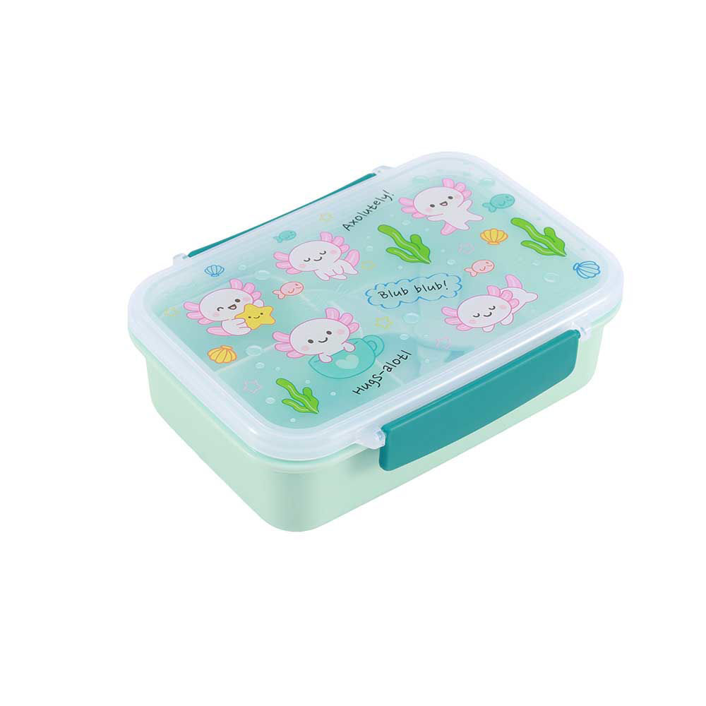 Lunch Box Kids AXOLUTELY da 650 ml con posate, pratica e compatta per scuola e tempo libero. Dimensioni 18 x 13 x 6 cm, ideale per trasportare pranzo o merenda nello zaino.
