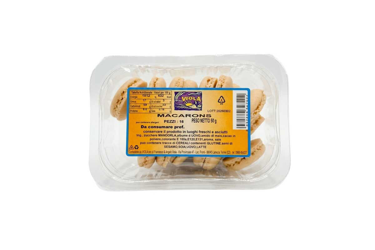 Macarons color pelle confezione da 8 coppie, peso totale 50 grammi. Ideali per dessert, torte e decorazioni di dolci.