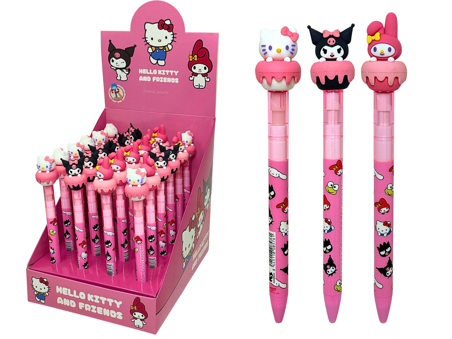 Matita eterna Hello Kitty decorata con personaggi iconici della serie, ideale per scrivere senza temperare con stile.