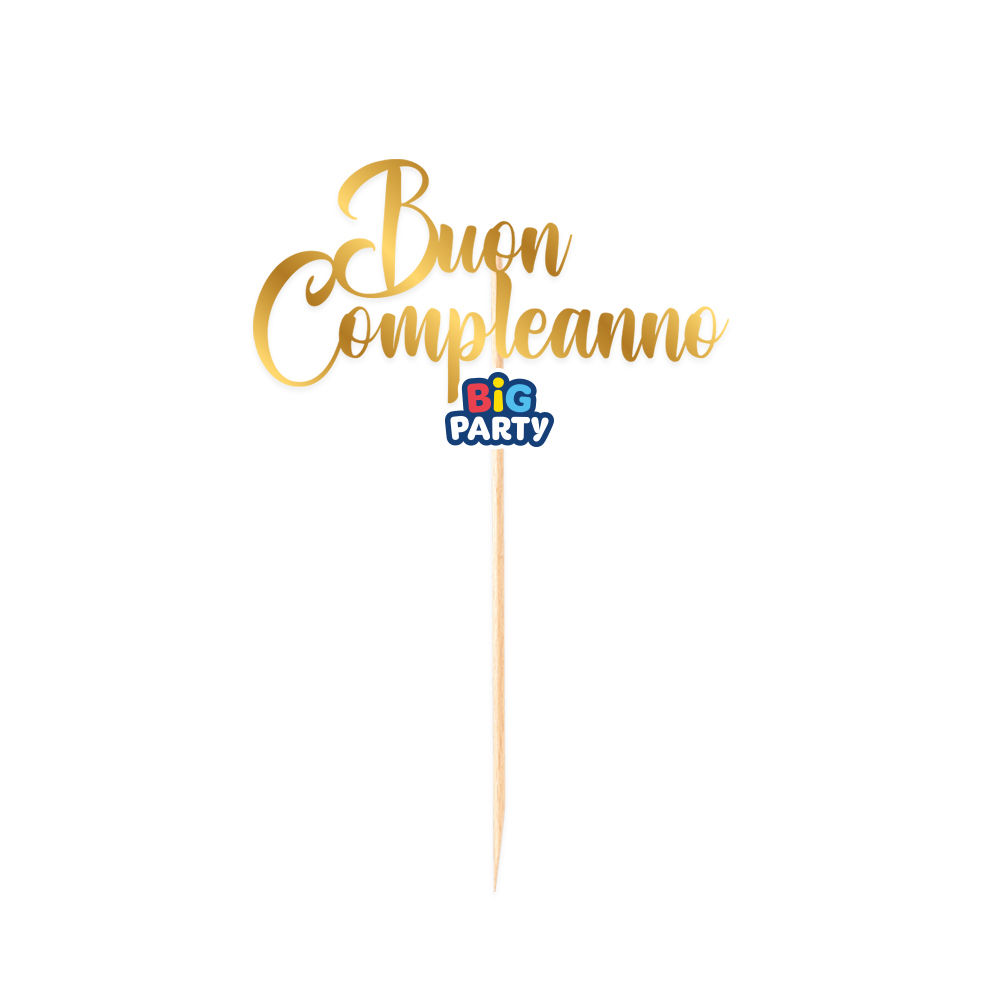 Mini Cake Topper Italic Buon Compleanno Oro Metal