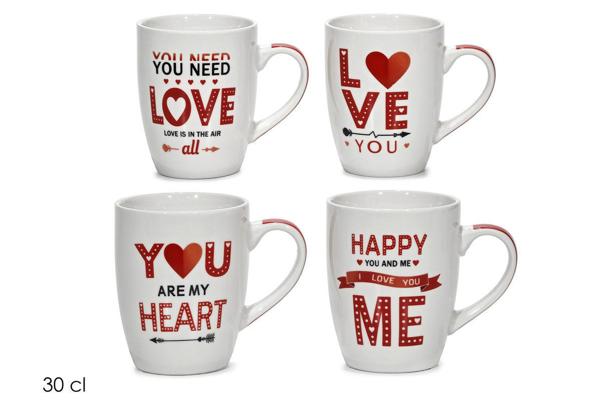 Tazza Mug Love da 30 cl in ceramica decorata con grafiche romantiche. Perfetta per un regalo affettuoso, colazioni in coppia o una pausa dolce.