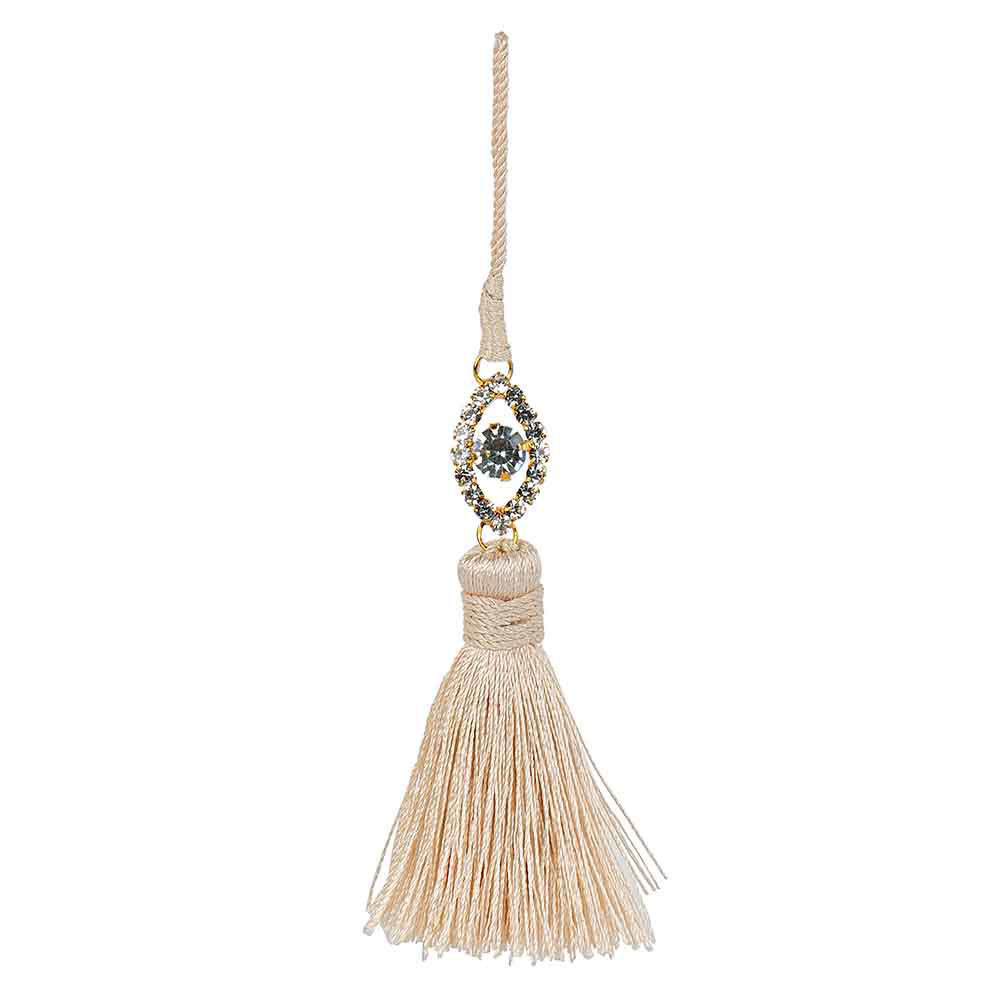La nappa color sabbia con strass è una decorazione versatile e sofisticata, ideale per completare confezioni con un tocco neutro ma raffinato.