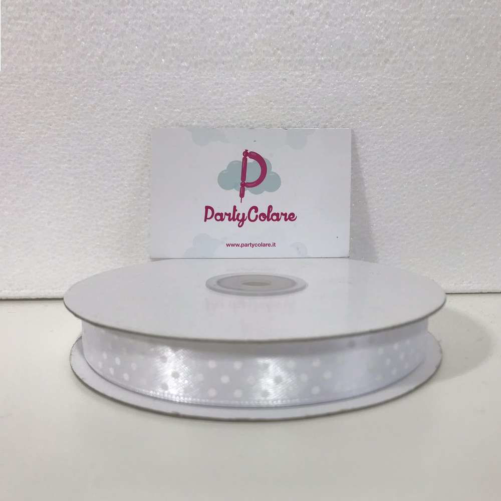 Rotolo Nastro doppio Raso Pois Bianco 10 mm 50 metri