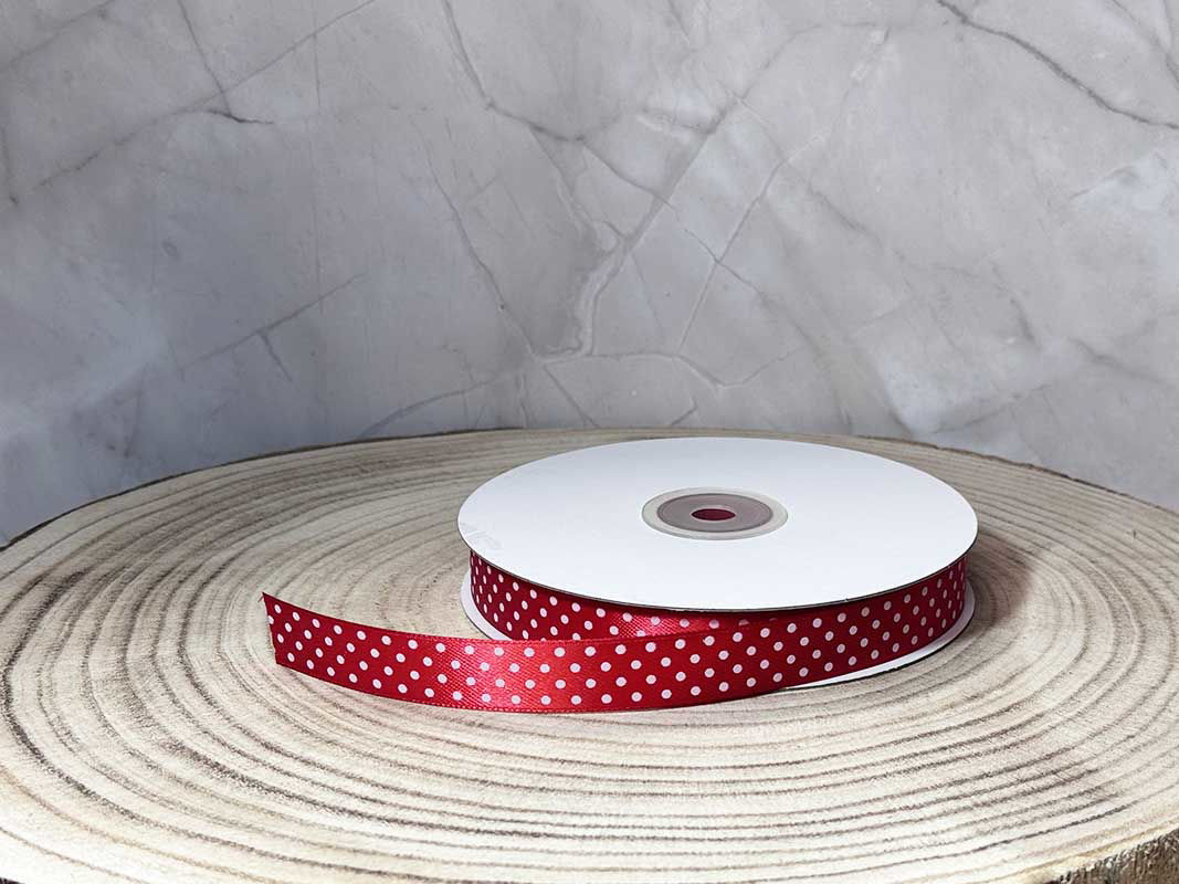 Rotolo Nastro Doppio Raso Pois Rosso 16 mm 50 metri