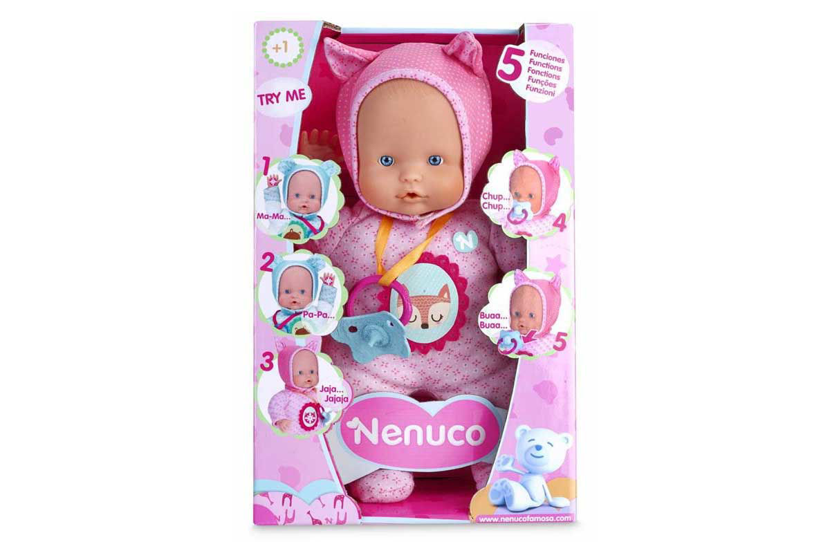 Nenuco Bebè Soft 5 Funzioni 30 cm è una bambola morbida e interattiva che riproduce cinque dolci suoni tipici dei neonati, ideale per accompagnare il gioco affettuoso dei più piccoli.