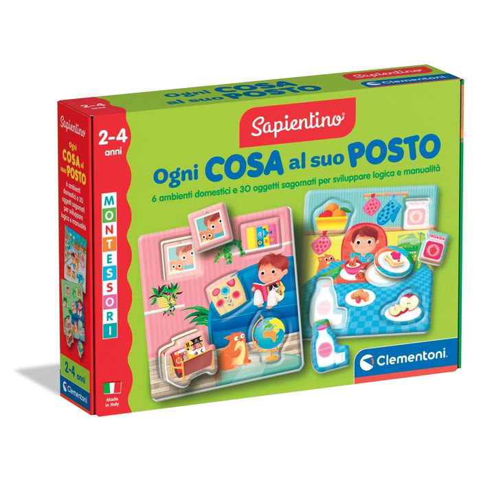 Con simpatiche schede illustrate, i bambini imparano a collocare gli oggetti nel contesto corretto: dove va il dentifricio? E il piatto? Il gioco guida il bambino a riconoscere le relazioni tra oggetti e ambienti quotidiani, come cucina, bagno, cameretta o giardino.