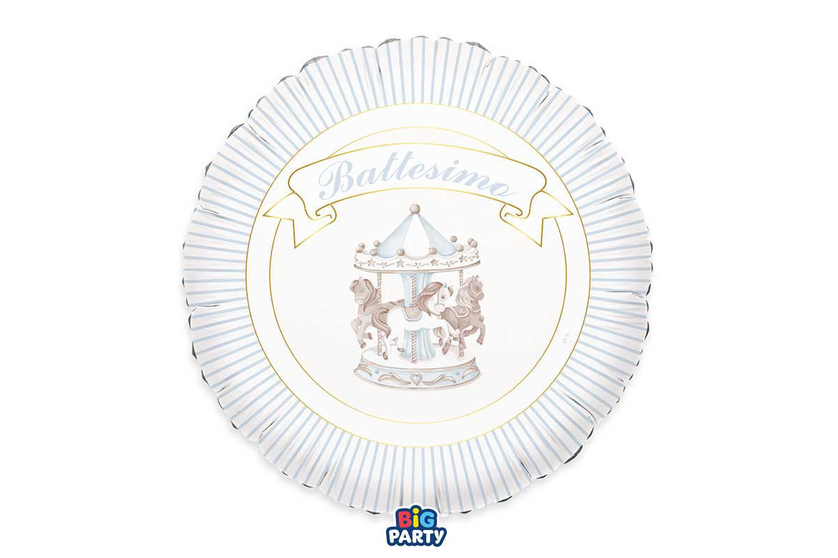 Palloncino foil tondo da 45 cm tema battesimo con carillon celeste, ideale per decorazioni eleganti e allestimenti per feste di battesimo.