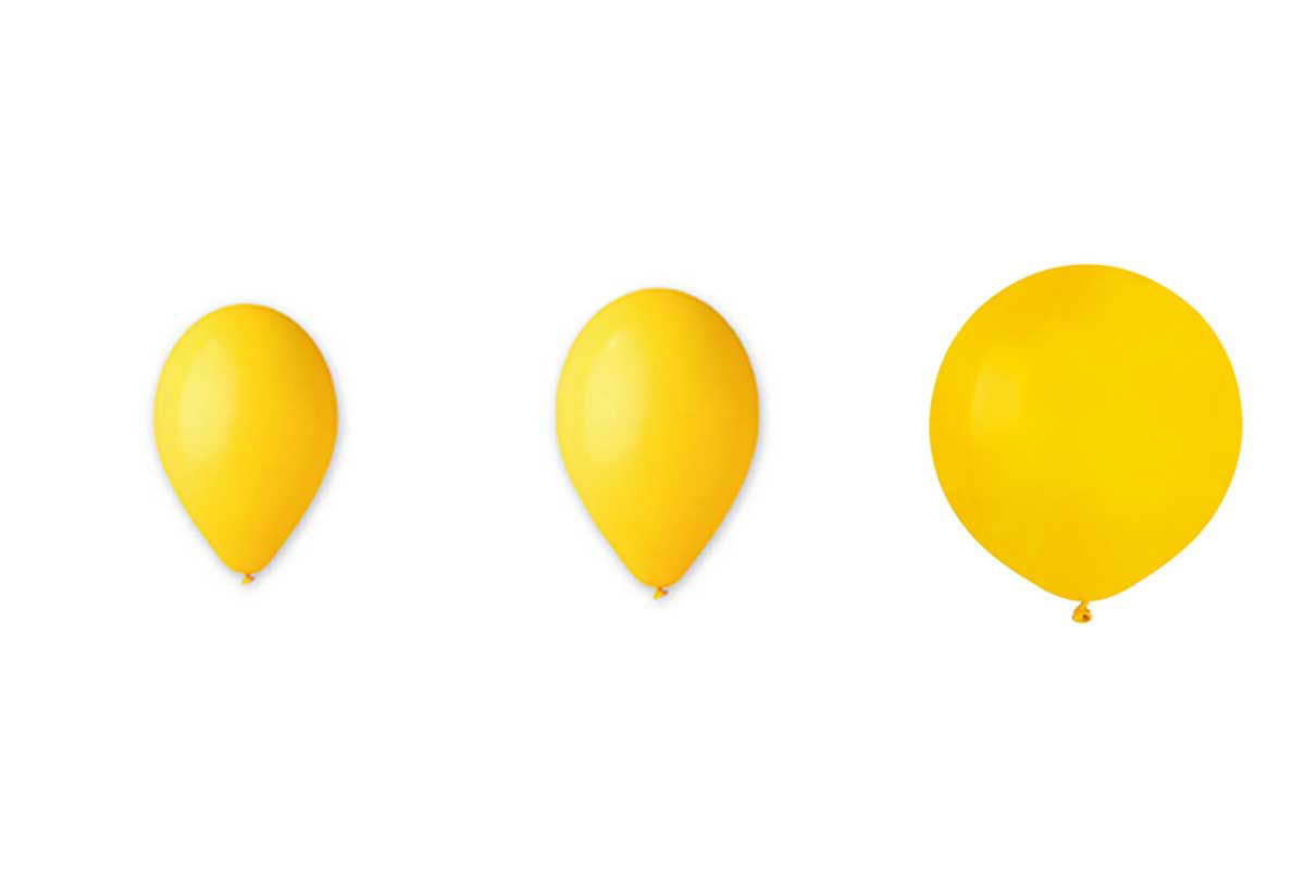 Palloncini gialli in lattice confezionati in busta BigParty con palloncini Gemar all’interno, ideali per feste, eventi e allestimenti decorativi; dal menu in basso puoi scegliere facilmente la dimensione disponibile.
