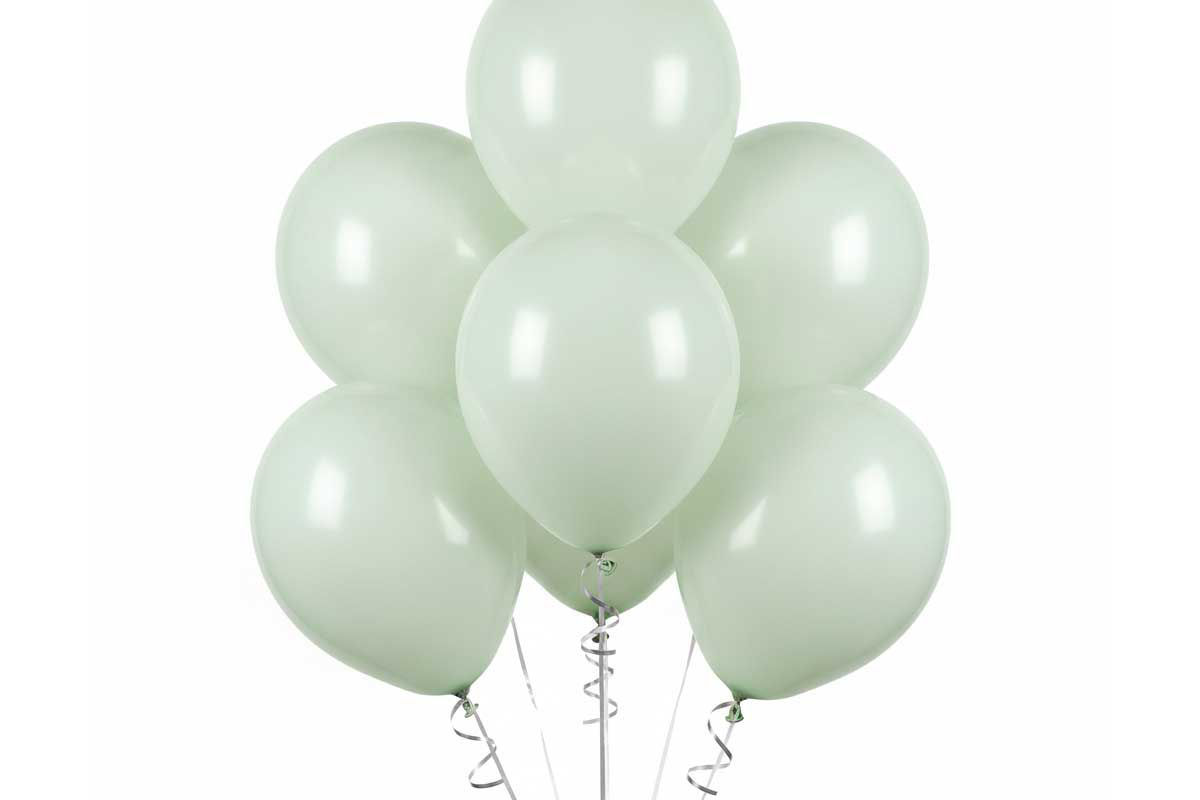 Palloncini in lattice Kalisan da 5’’ colore verde macaron, ideali per dettagli freschi e decorazioni pastello eleganti.