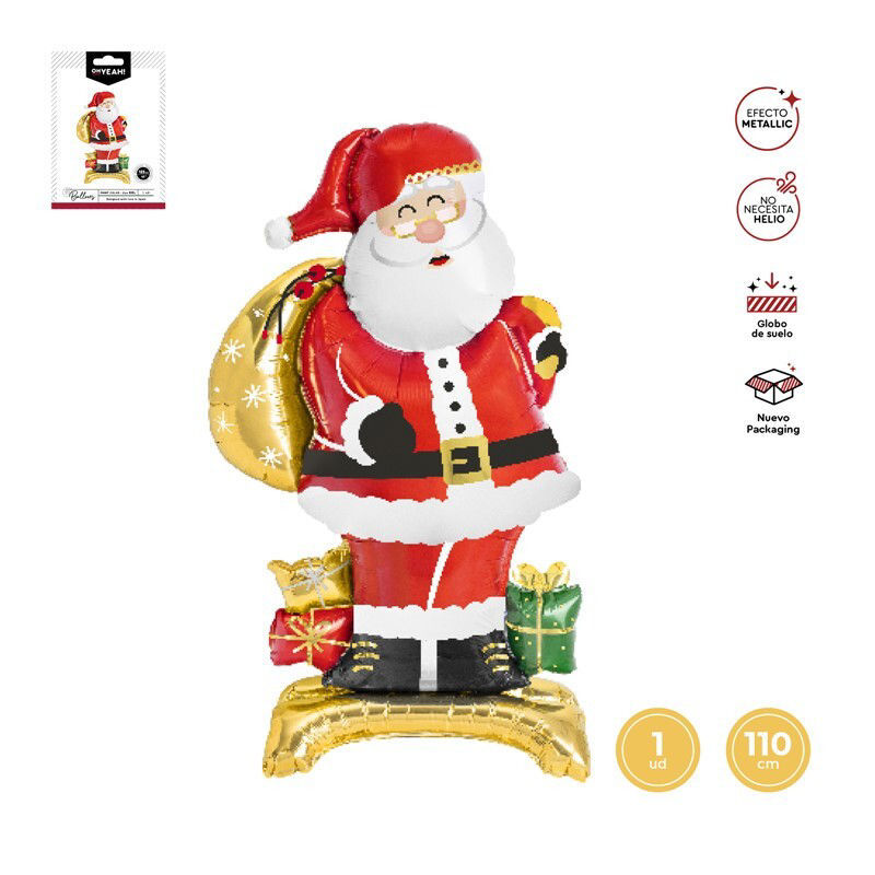 Palloncino standing balloon raffigurante Babbo Natale alto 123 cm, ideale per decorazioni natalizie, vetrine, feste ed eventi a tema. Stabile e scenografico, perfetto per creare un’atmosfera festiva.