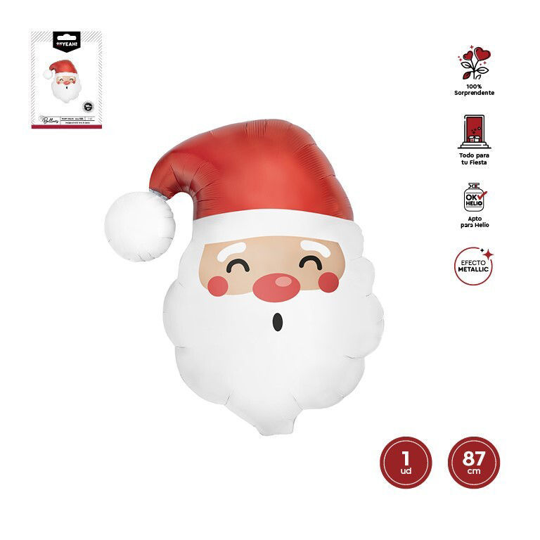 Palloncino super shape raffigurante la testa di Babbo Natale da 87 cm, ideale per decorazioni natalizie, feste, vetrine ed eventi a tema. Perfetto per creare un’atmosfera festosa e accogliente, gonfiabile con aria o elio.