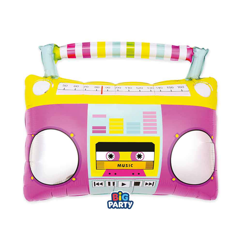 Questo palloncino in mylar è decorato con grafiche vivaci ispirate al mondo della musica: note musicali, casse, cuffie e vinili. Con una misura generosa di 57x59 cm, è perfetto come punto focale in sala, accanto alla torta o all’ingresso della festa.