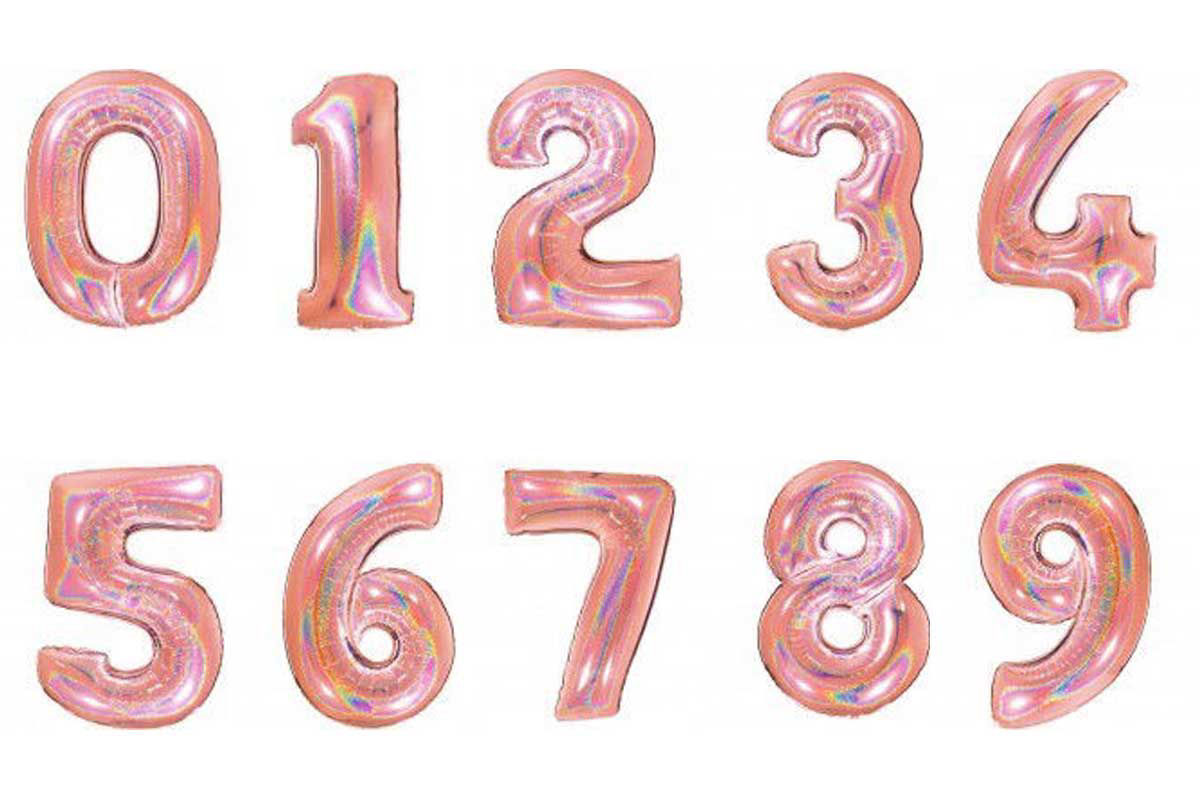 Palloncino Mylar Glitter 100 cm rosa gold numeri da 0 a 9. Effetto brillante e glamour, ideale per compleanni, anniversari ed eventi eleganti. Venduto singolarmente.