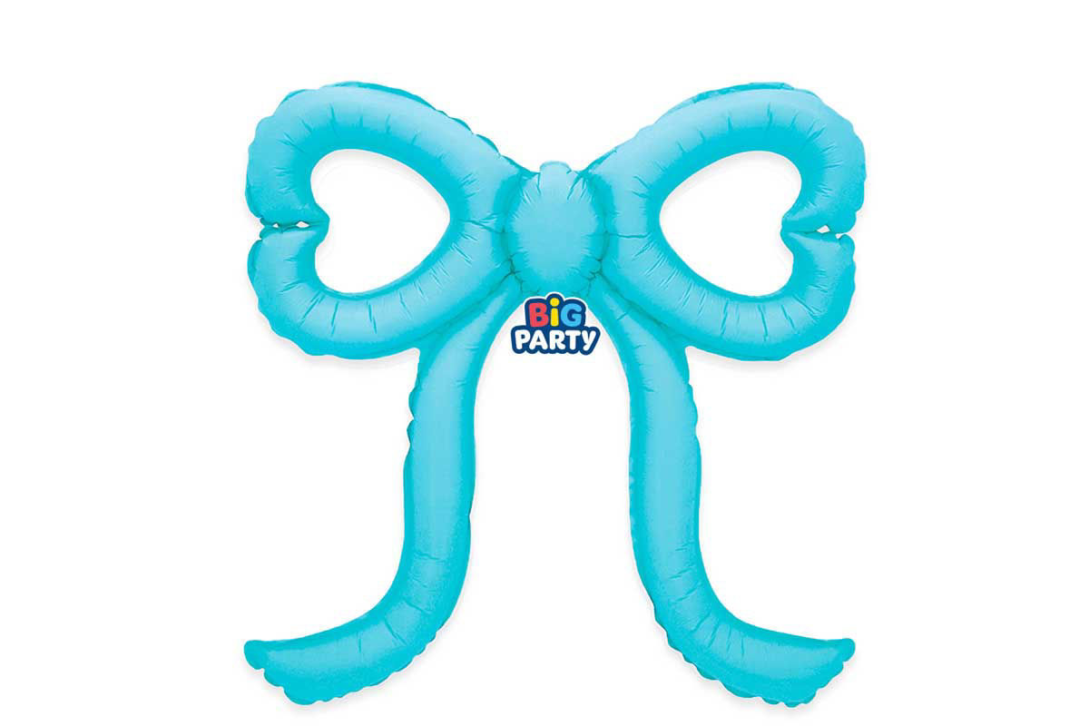 Palloncino Mylar a forma di fiocco Slim Bow celeste misura 51 x 53 cm, ideale per decorazioni di festa, baby shower, battesimi e allestimenti scenografici.