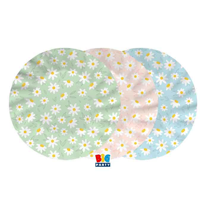 📦 Contenuto della confezione: 6 piatti in carta Daisy – 25 cm (fantasie assortite)