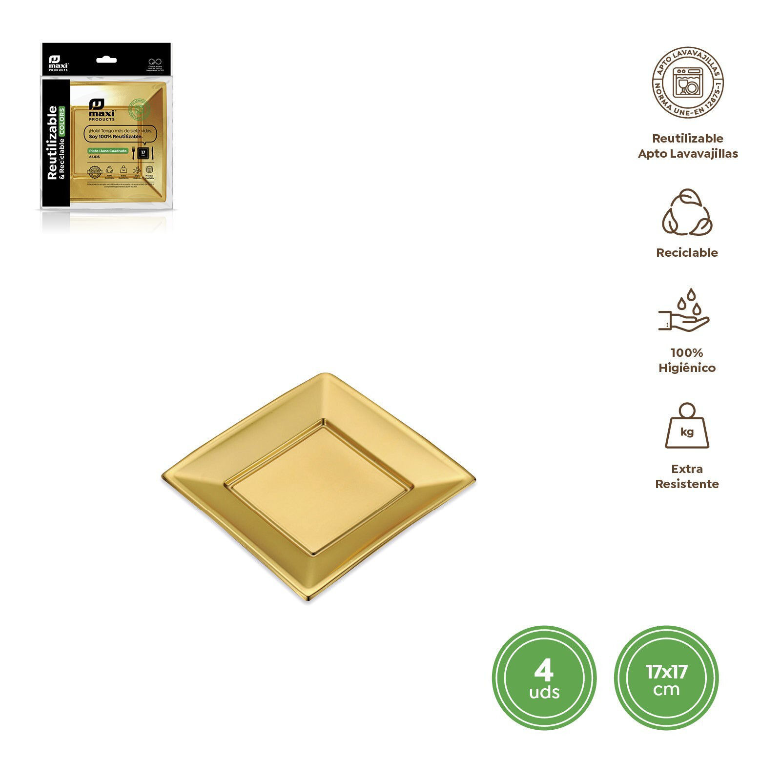 Piatto quadrato riut oro 17x17 cm ps+pp 4 pz perfetto per un uso versatile. Design curato, resistente e adatto a feste, allestimenti o casa. Prodotto ideale per chi cerca praticità e stile in ogni occasione.