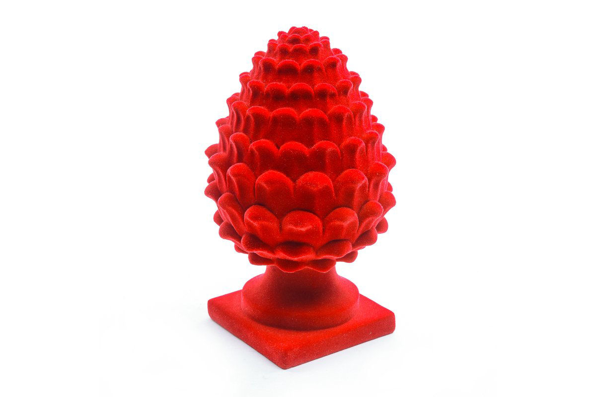 Pigna decorativa da appoggio in poliresina floccata, ideale per arredare la casa con un tocco elegante e natalizio.