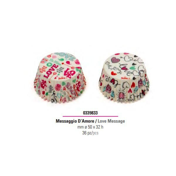 Pirottini in carta forno 50x32 mm Messaggio d'Amore 36 pezzi – Pirottini in carta forno Decora, ideali per muffin e cupcake.