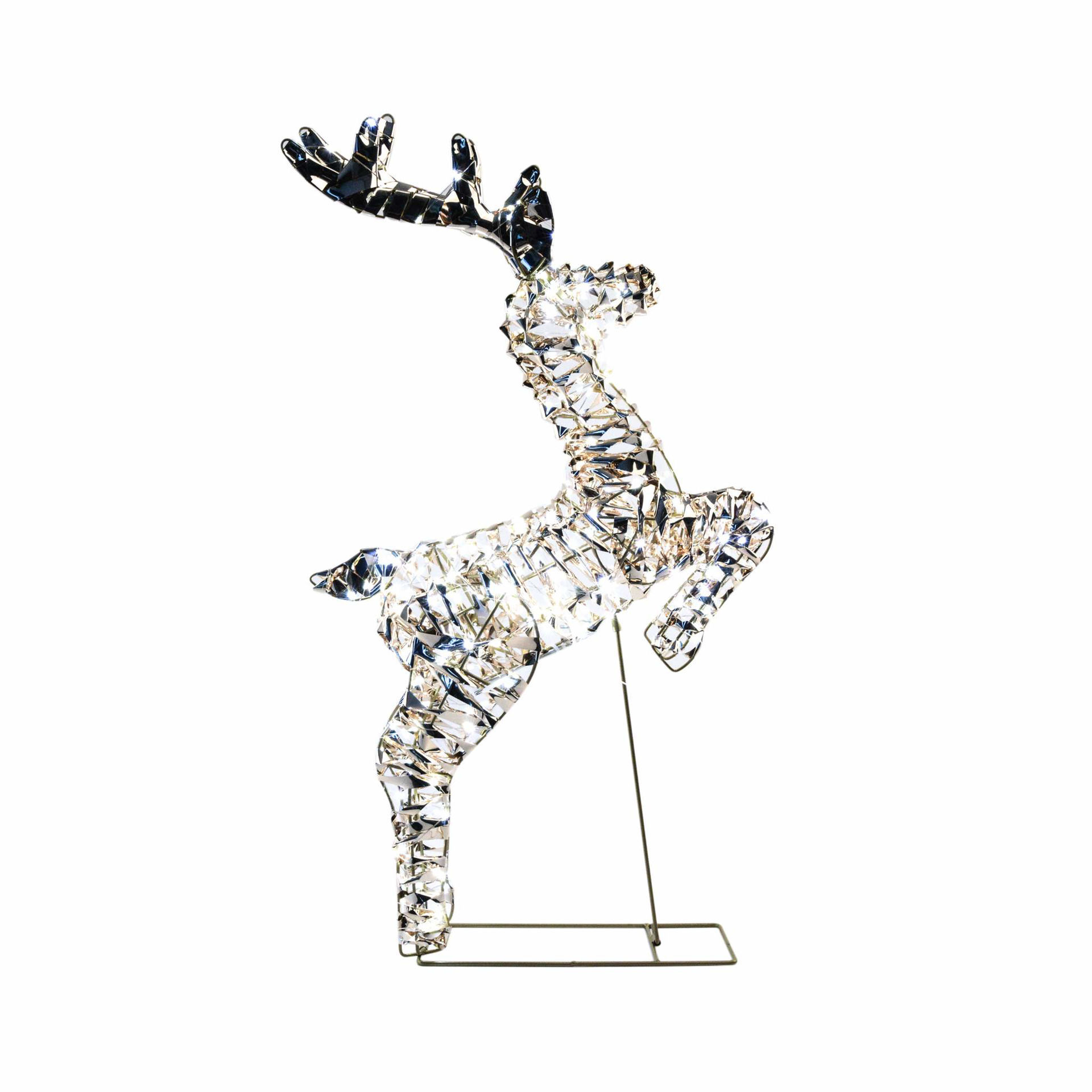 Questa splendida renna luminosa in metallo e plastica trasparente con 300 LED bianchi è la scelta perfetta per chi desidera arricchire le decorazioni natalizie con stile e luminosità. Con le sue dimensioni di 40x12xH74 cm, si adatta facilmente a spazi interni come soggiorno, vetrine o hall, creando un’atmosfera magica e accogliente. Il trasformatore IP20 a 4.5V 6W garantisce sicurezza e basso consumo energetico, rendendo questa decorazione luminosa adatta ad un utilizzo prolungato. Grazie al design curato e al gioco di luci, la renna LED si presta sia come elemento singolo che in abbinamento ad altre figure natalizie luminose, valorizzando addobbi, decorazioni natalizie e ambientazioni festive. La struttura robusta in metallo assicura stabilità, mentre la plastica trasparente esalta la luminosità dei LED. Perfetta per chi cerca decorazioni natalizie luminose in versione singolare e plurale come renna, renne, luce, luci natalizie.