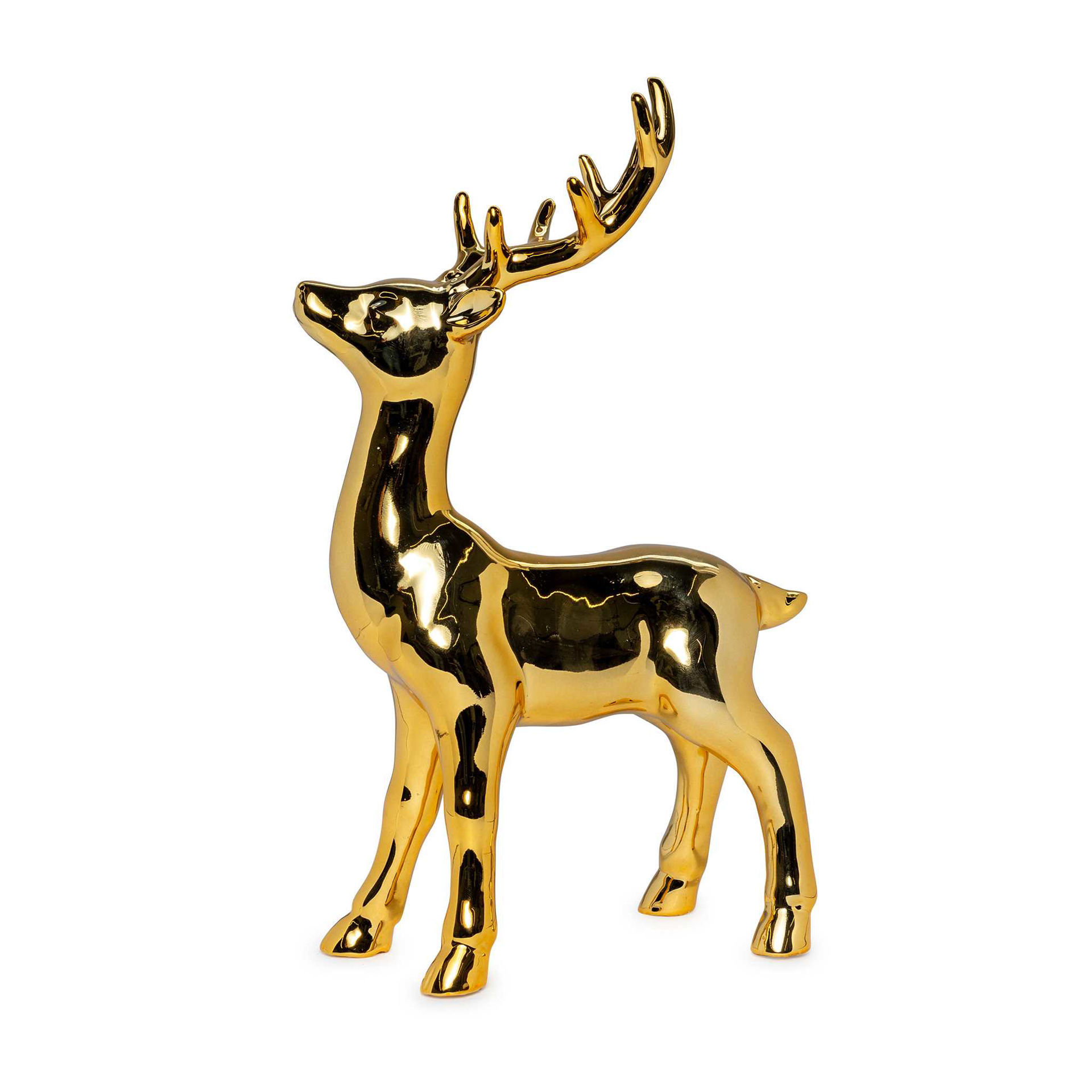 Renna natalizia in porcellana dorata, misura 19,5x12x31 cm, elegante decorazione da tavolo o salotto per un Natale raffinato e scintillante.