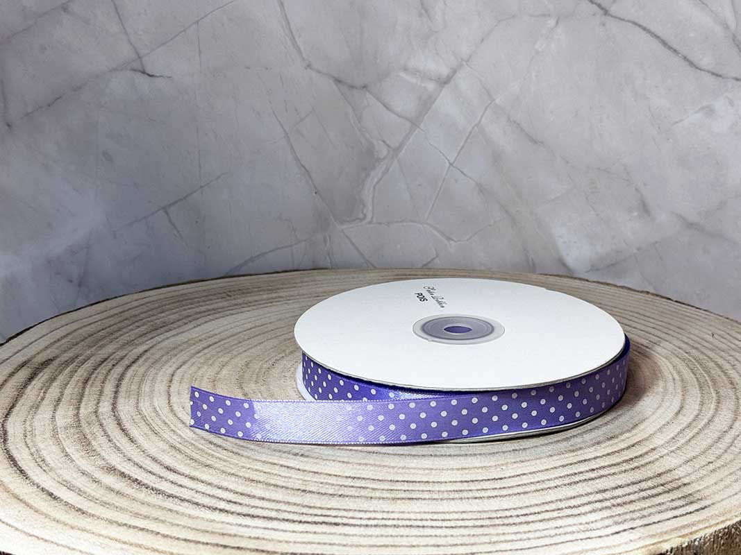 Rotolo Nastro Doppio Raso Pois Lilla 10 mm 50 mt