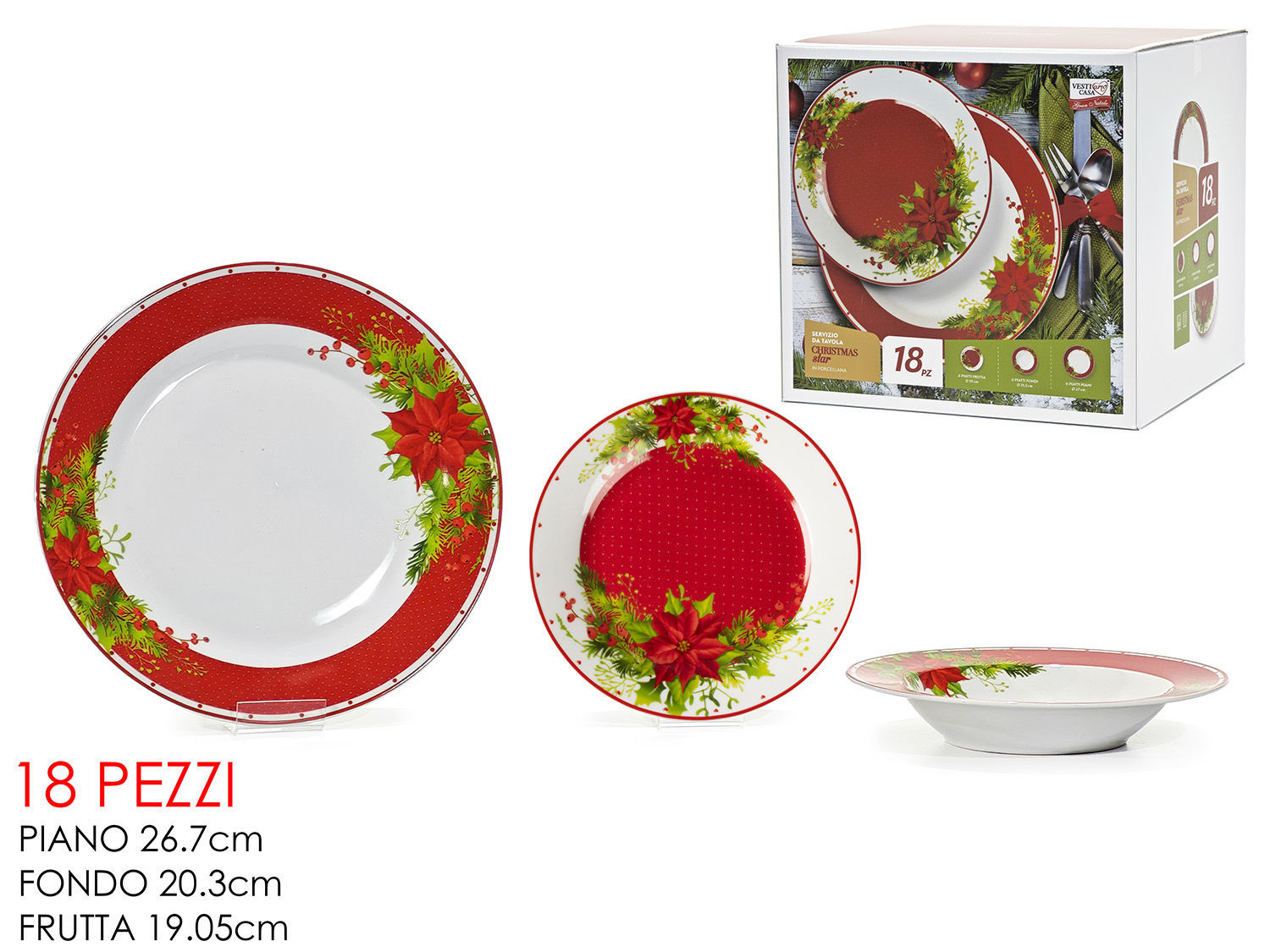 Elegante servizio tavola natalizio da 18 pezzi in porcellana decorata con stella di Natale rossa.