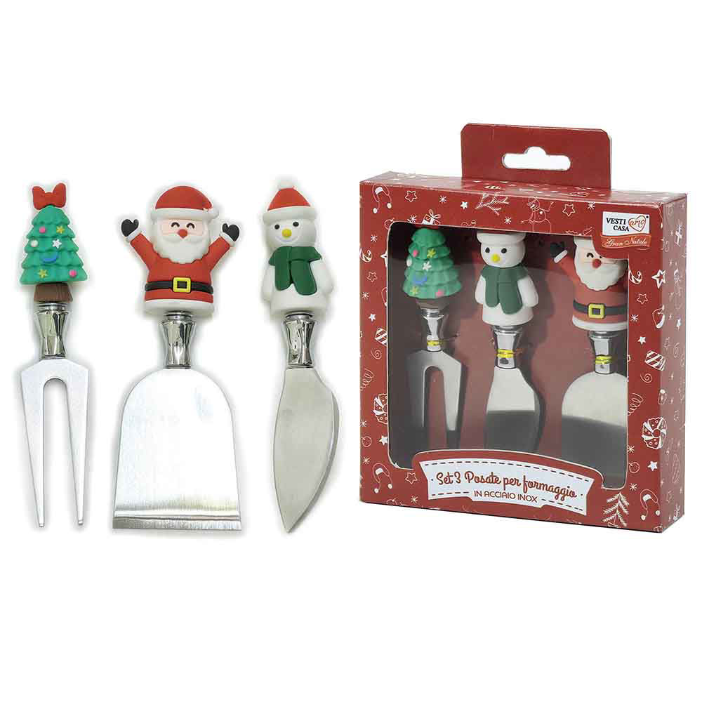 Il Set di 3 Posate per Formaggi Natalizie è un'idea regalo perfetta per il periodo delle festività. Questo set include tre utensili in acciaio inox, ognuno con un manico decorato a tema natalizio: un albero di Natale, Babbo Natale e un pupazzo di neve. Ideale per servire e gustare formaggi con stile durante pranzi e cene festive.