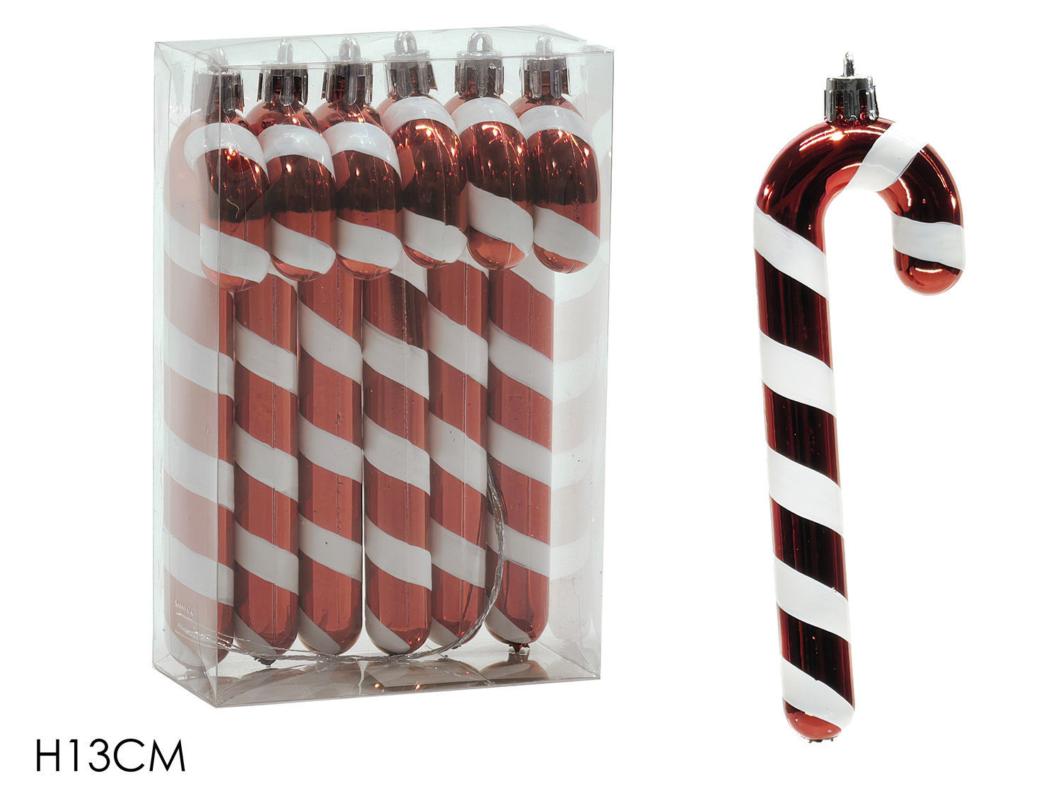 Set da 6 decorazioni natalizie a forma di candy rosso e bianco, altezza 13 cm. Perfette per addobbare l’albero di Natale.